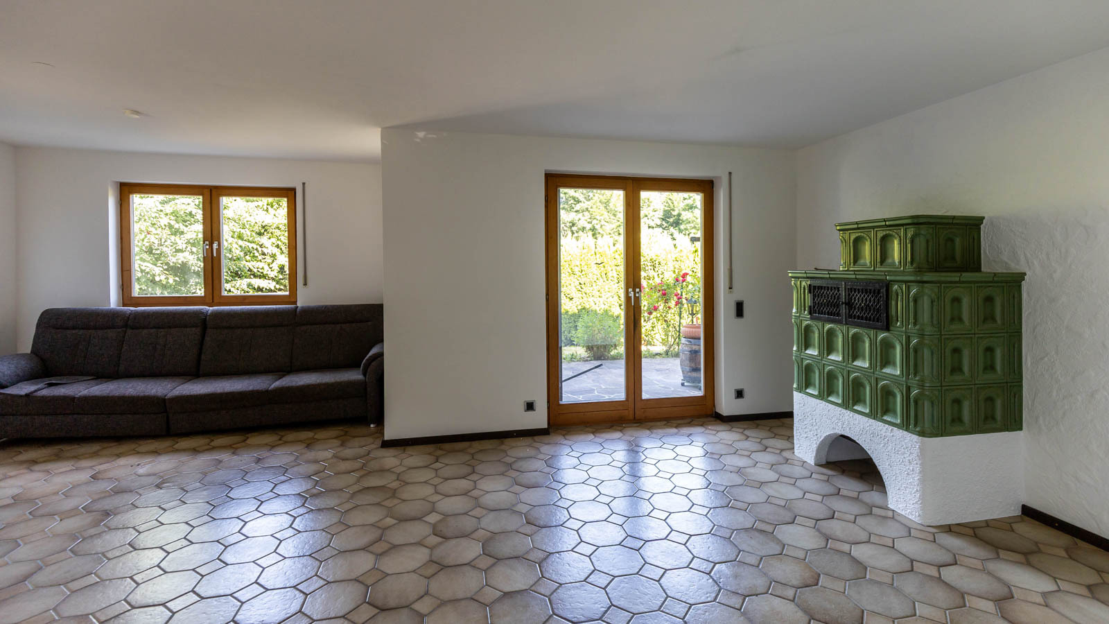Beheizt wird das Haus über eine Fußbodenheizung in den Wohn- und Schlafräumen. Ein Kaminofen im Wohnzimmer schafft zusätzlich eine angenehme Wohnatmosphäre und sorgt in der Übergangszeit für behagliche Wärme.