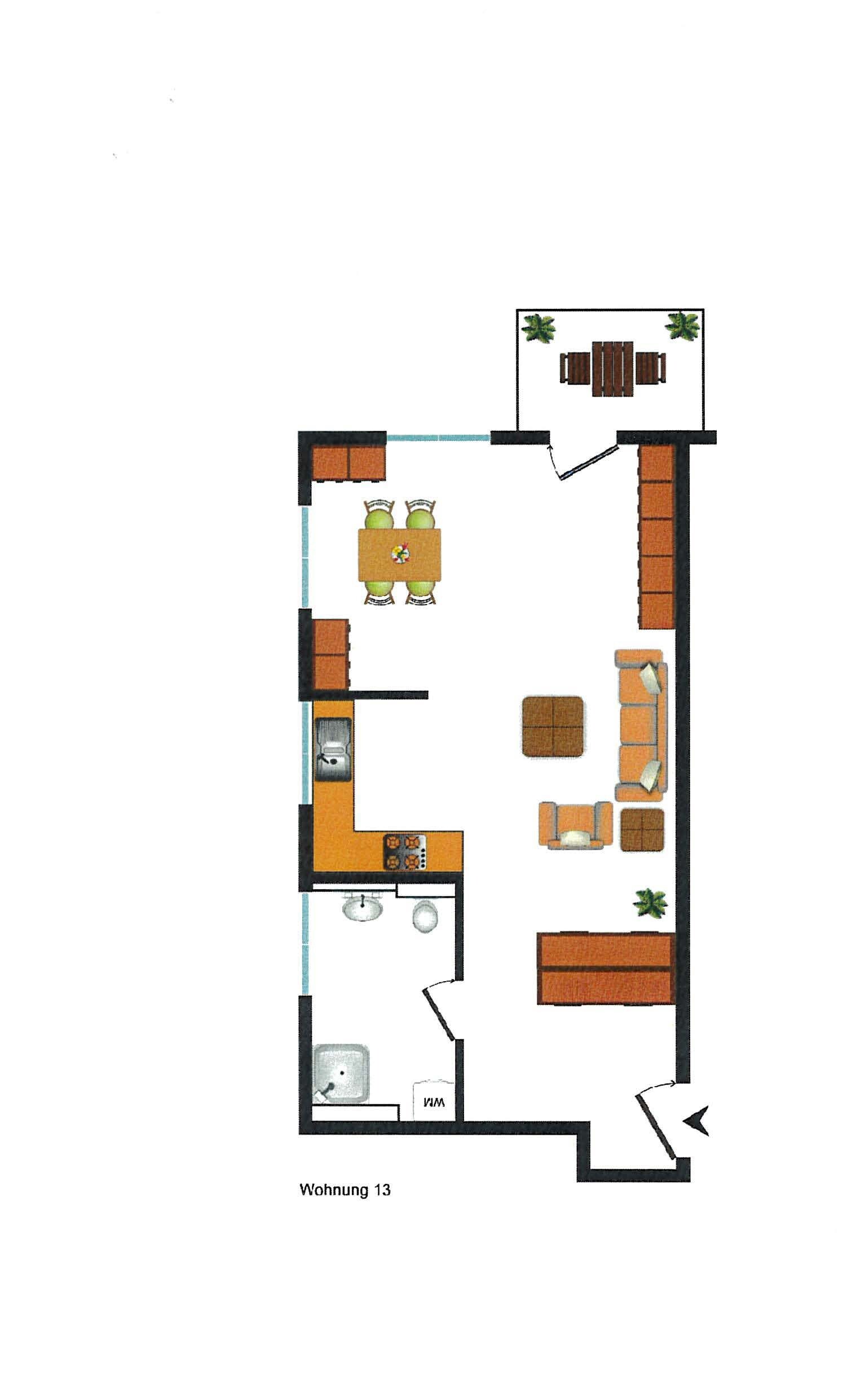 Die Wohnung ist vollständig möbliert und mit allem wesentlichen Mobiliar sowie Haushaltsutensilien ausgestattet.