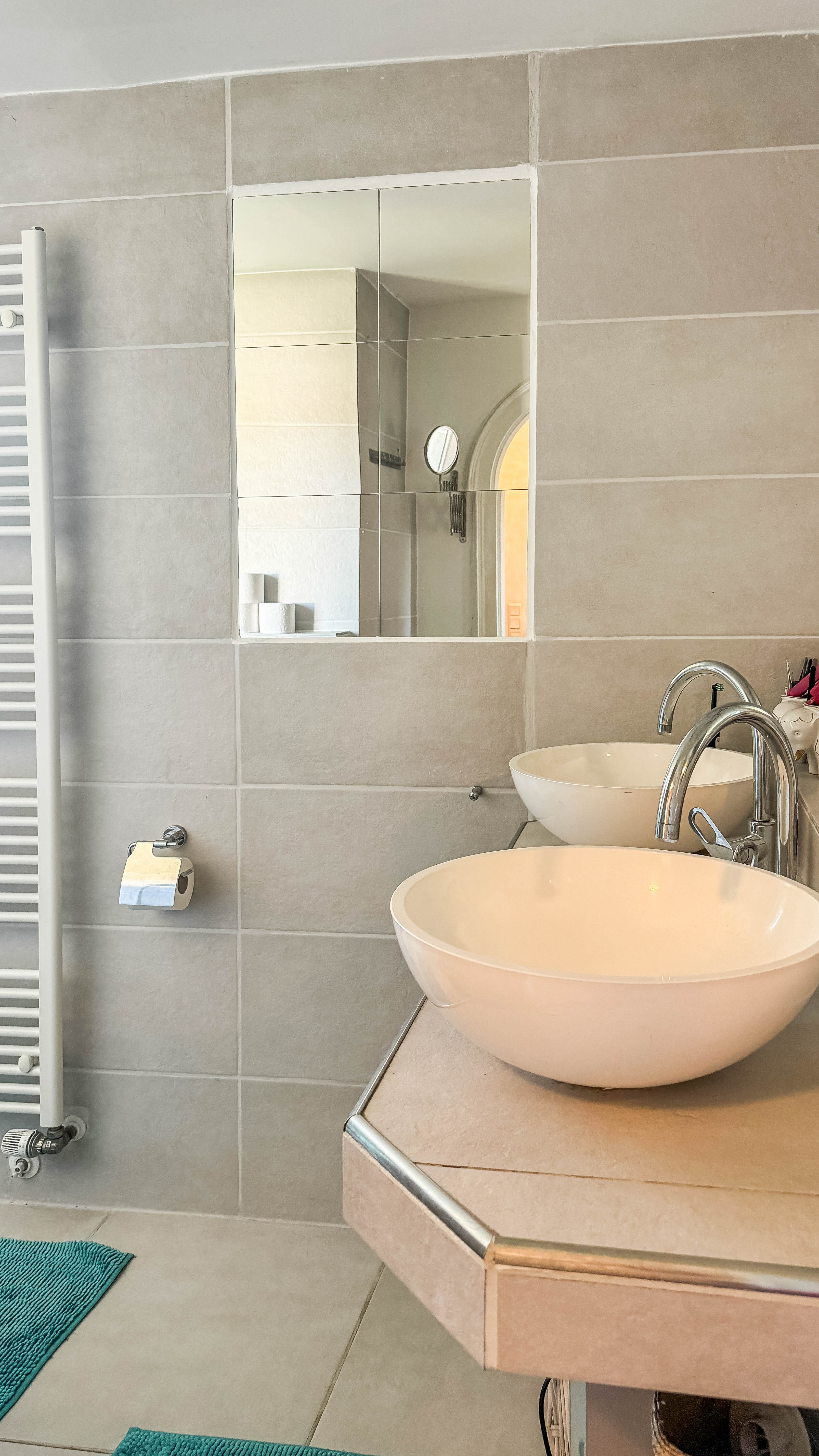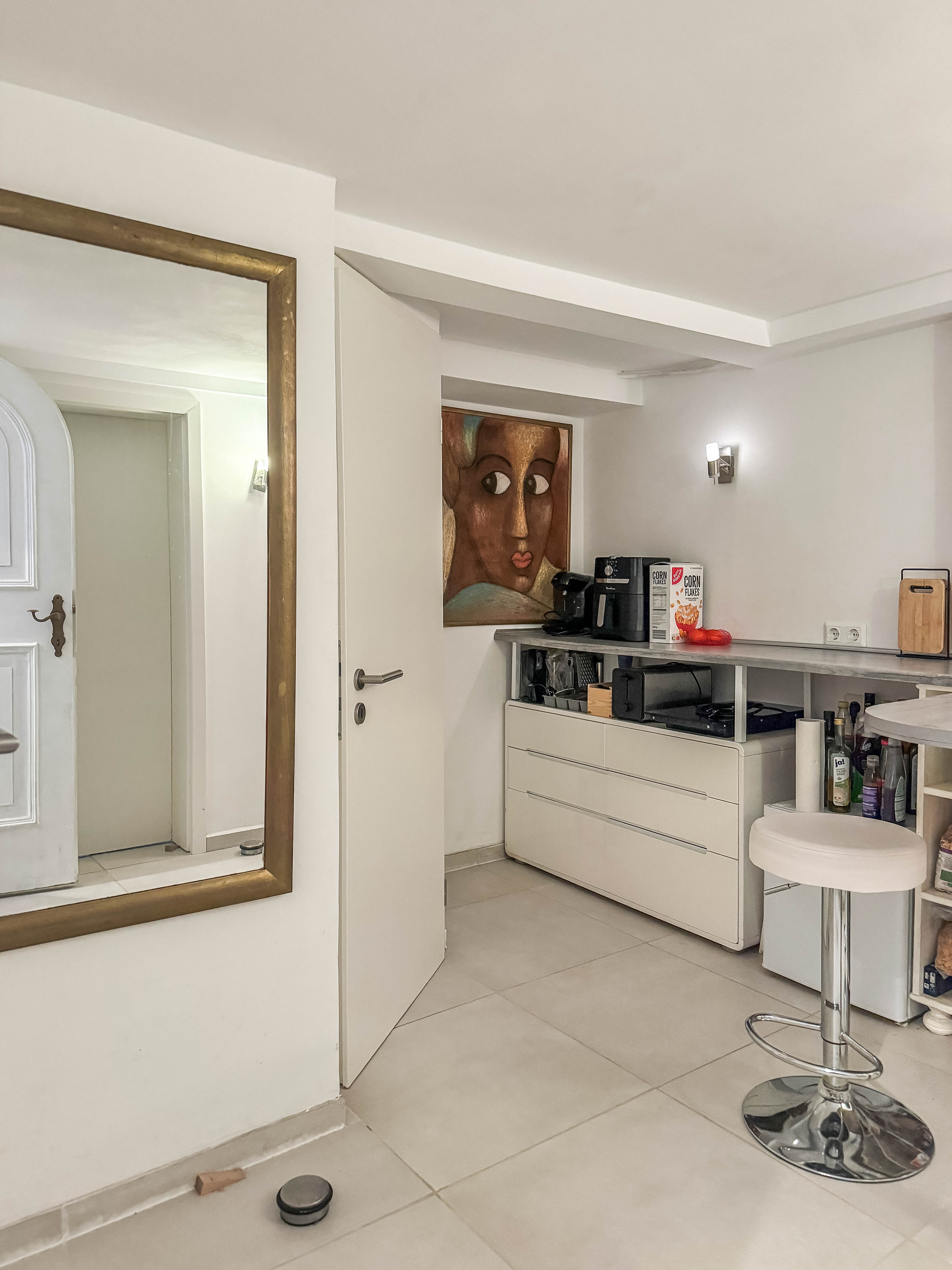 Im Rahmen umfangreicher Modernisierungsmaßnahmen wurde seit 2017 das Haus renoviert und in wichtigen Bereichen saniert. So wurde das Untergeschoss wohnräumlich ausgebaut und mit einer Einbauküche und einem schicken Badezimmer versehen. Das Gäste-WC im Erdgeschoss und das Tageslicht-Familienbad in der ersten Etage wurden neu gefliest und mit neuer Keramik ausgestattet. Die Fußbodenheizung im Untergeschoss, im Erdgeschoss sowie im Badezimmer der ersten Etage sorgt für angenehme Wärme. Das Studio im Dach ist seit der Renovierung ein behaglicher, liebevoll gestalteter Rückzugsort mit zusätzlicher Schlafmöglichkeit. Vier Schlafzimmer bieten ausreichend Platz für die ganze Familie, während die separate Einliegerwohnung mit eigenem Bad, Küche und Schlafzimmer zusätzliche Wohn- oder Nutzungsmöglichkeiten eröffnet. Die großformatigen Bodenfliesen im Erdgeschoss, die schicke moderne Einbauküche sowie die kürzlich eingesetzten dreifach-verglasten, einbruchsicheren und abschließbaren Fenster- und Terrassentüren mit zusätzlichen Pilzkopfverriegelungen und elektrischen Rollläden vervollständigen den Gesamteindruck eines modernen und zeitgemäßen Wohnambientes. Nach Abschluss der Modernisierung in den Innenräumen wurde zudem eine neue Dachdämmung eingebracht. Schließlich wurde 2025 die Fassade verputzt und komplett neu gestrichen.