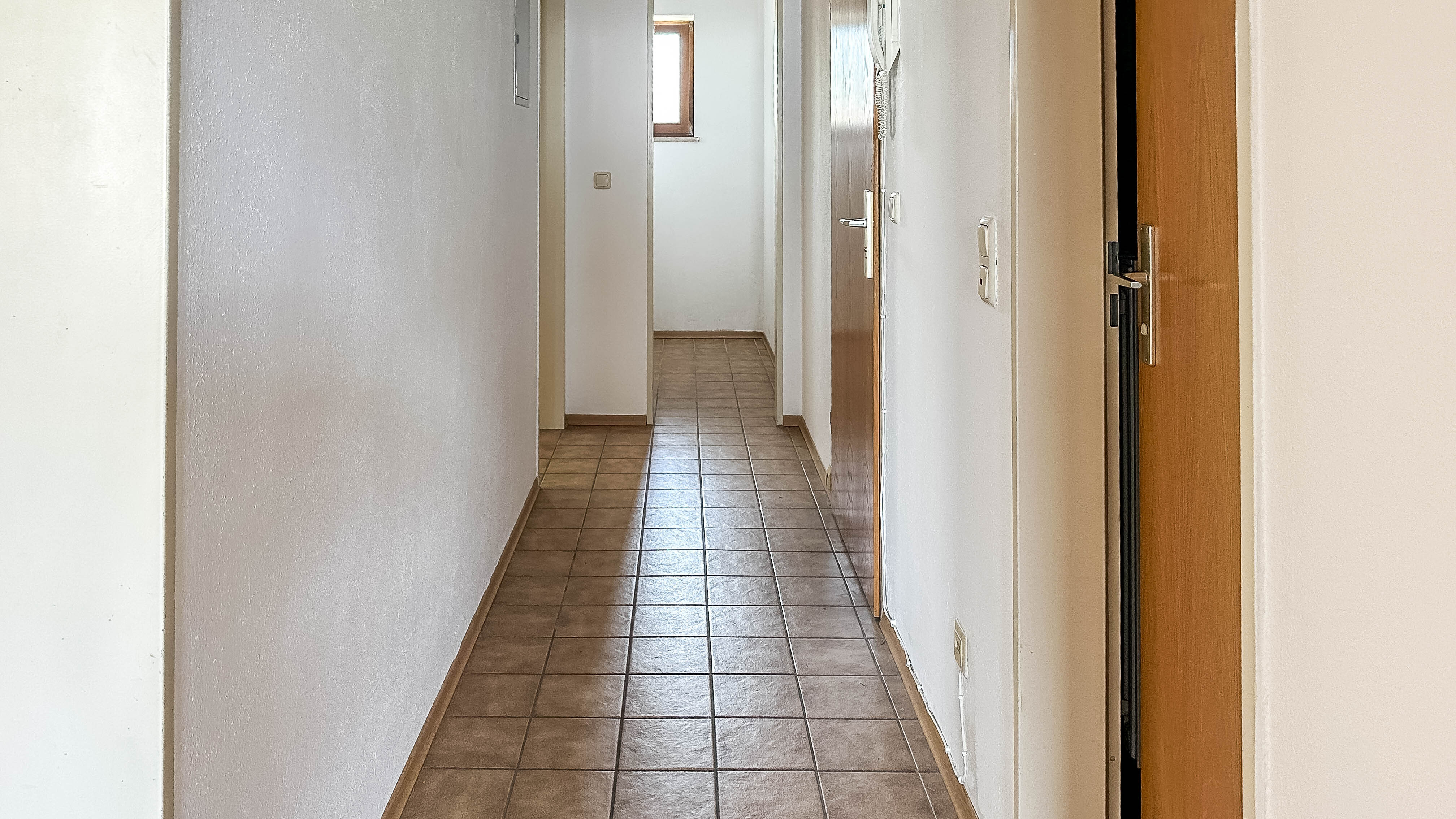Die Zwei-Zimmer-Balkonwohnung befindet sich in der ersten Etage eines 3-Parteienhauses.