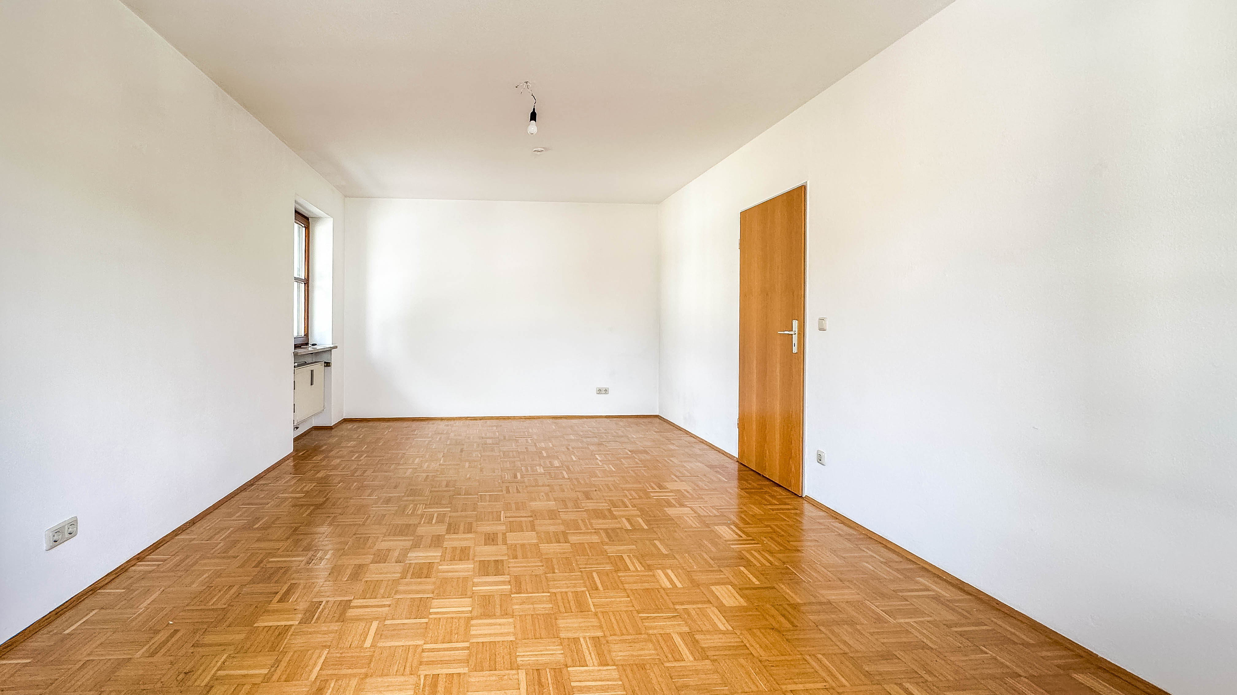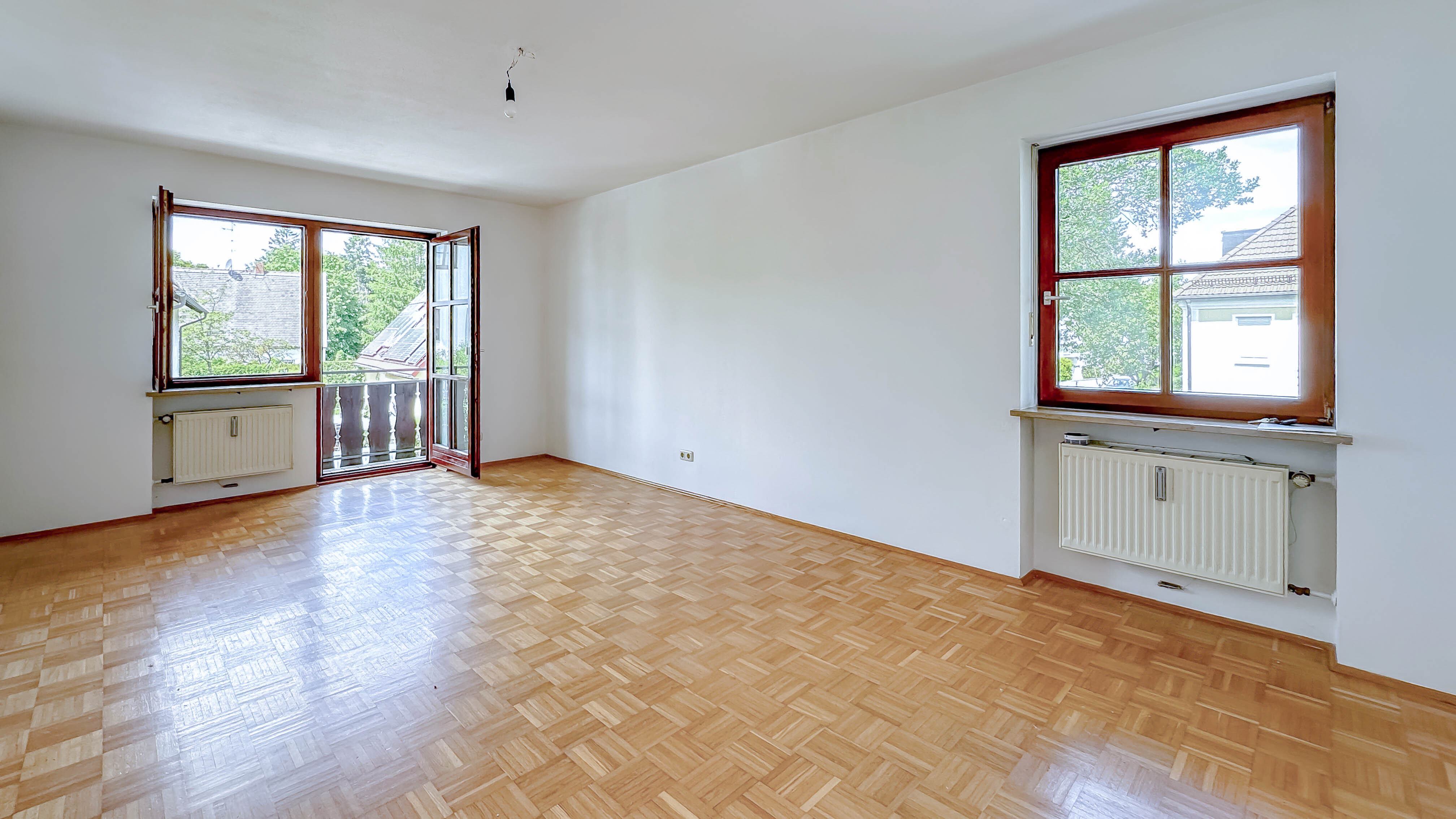 Highlight der Wohnung ist das sonnige Wohnzimmer mit Zugang zum lang gestreckten überdachten Westbalkon.