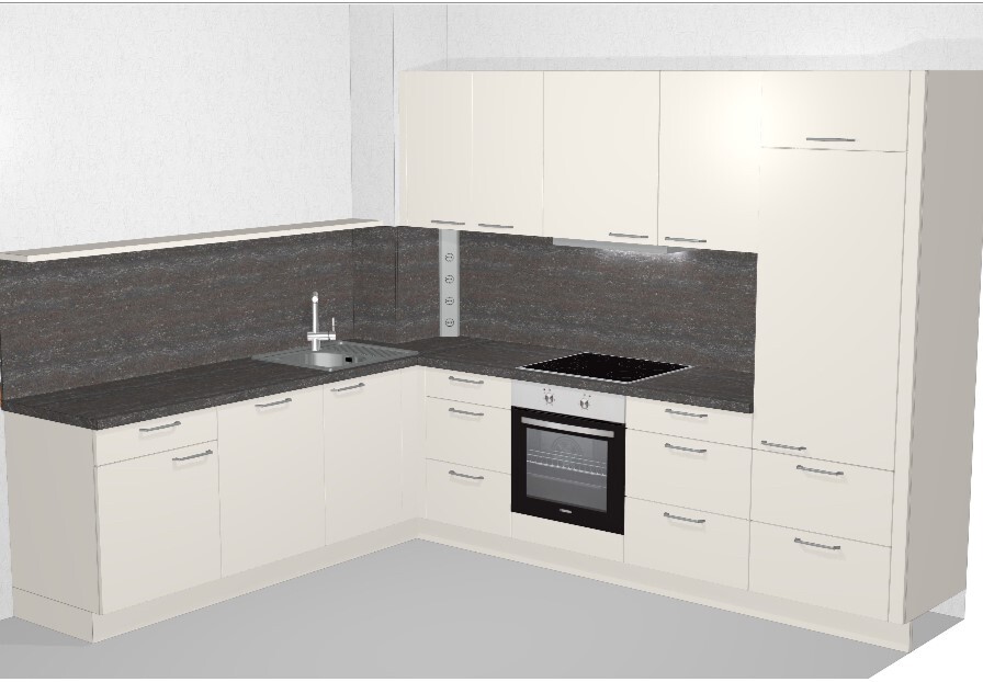 Für die ebenfalls westseitig ausgerichtete Wohnküche hat der Vermieter eine schicke Einbauküche mit weißer Front und allen Elektrogeräten – Kombiherd, Spülmaschine, Kühl-Gefrierkombination – bestellt.