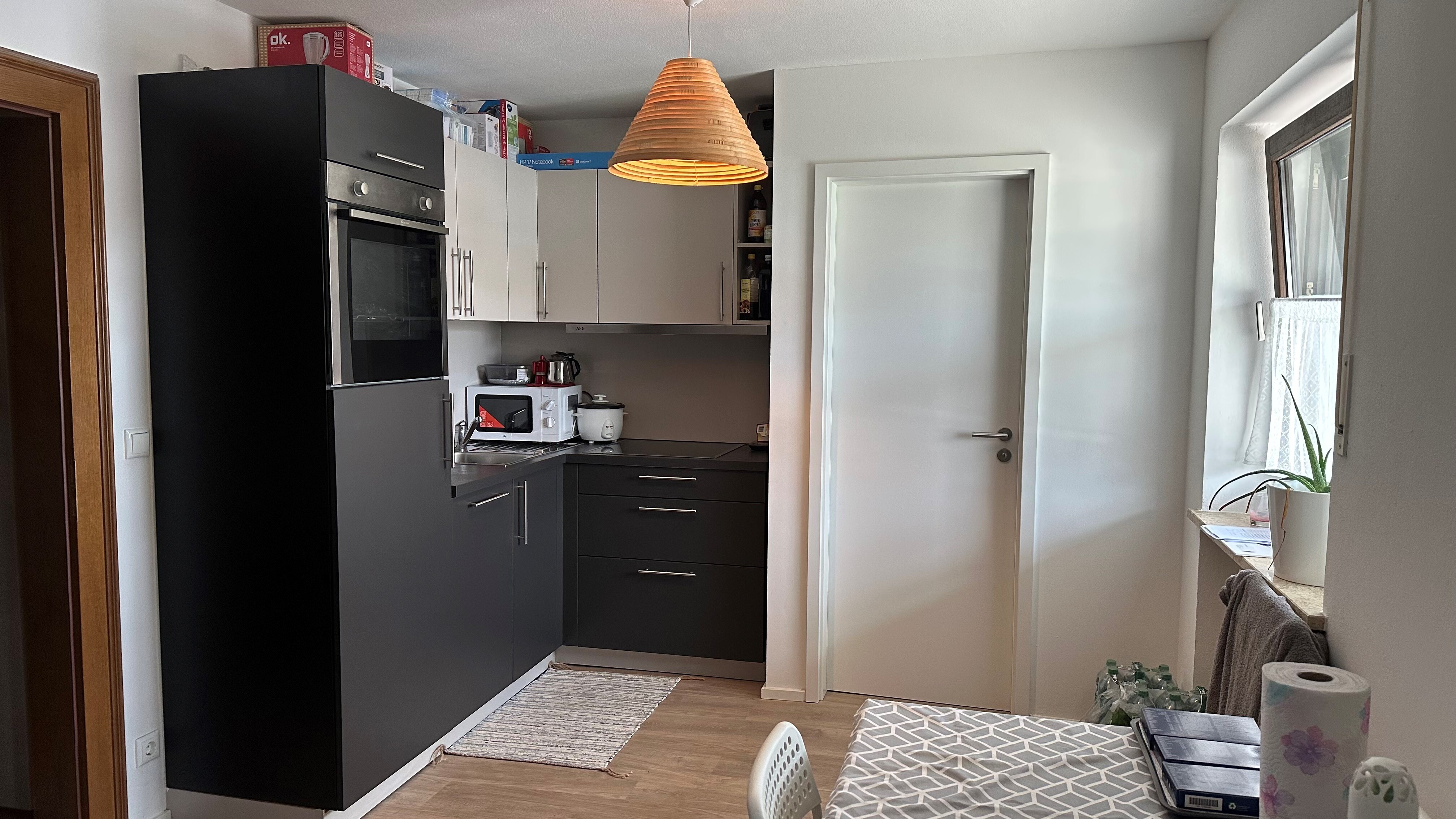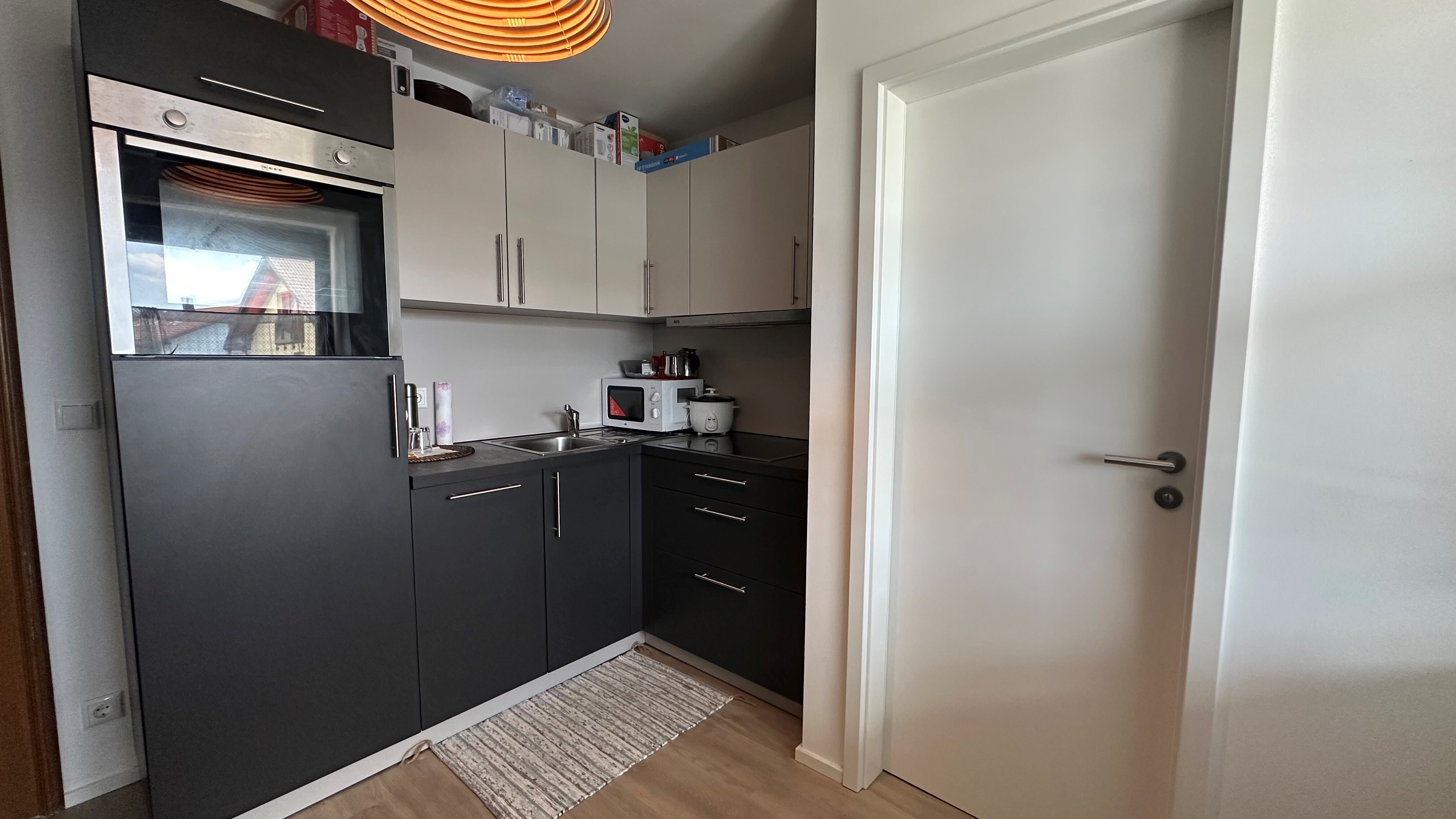 Die vorhandene Einbauküche ist erst zwei Jahre alt, wird vom Vermieter bereitgestellt und ist im Mietpreis enthalten. Sie verfügt über ein Kochfeld, einen Backofen, eine Kühl-Gefrierkombination, einen Geschirrspüler sowie Ober- und Unterschränke.