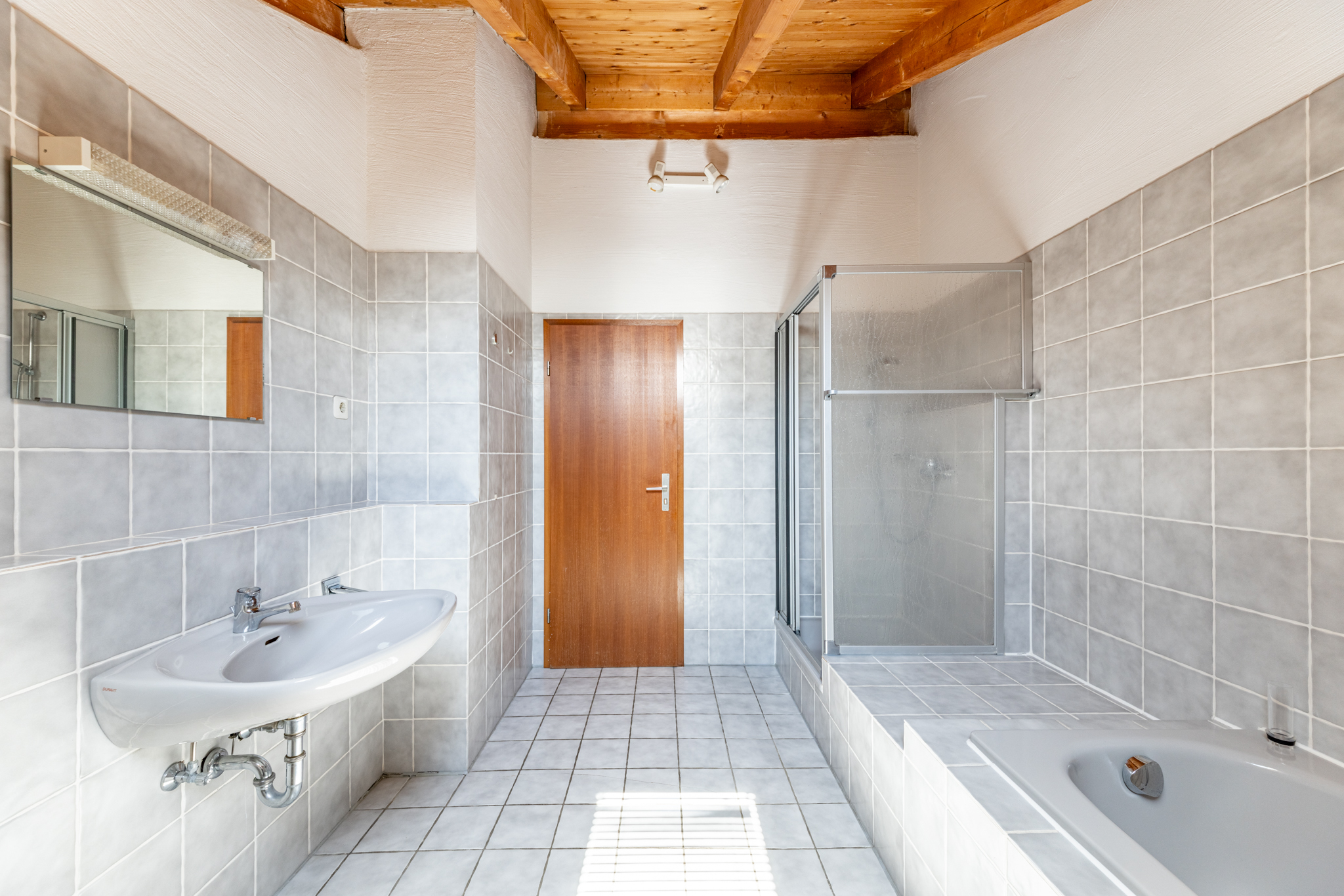 Im gesamten Erdgeschoss sowie in den zwei Hobbyräumen im Untergeschoss gibt es eine Fußbodenheizung.