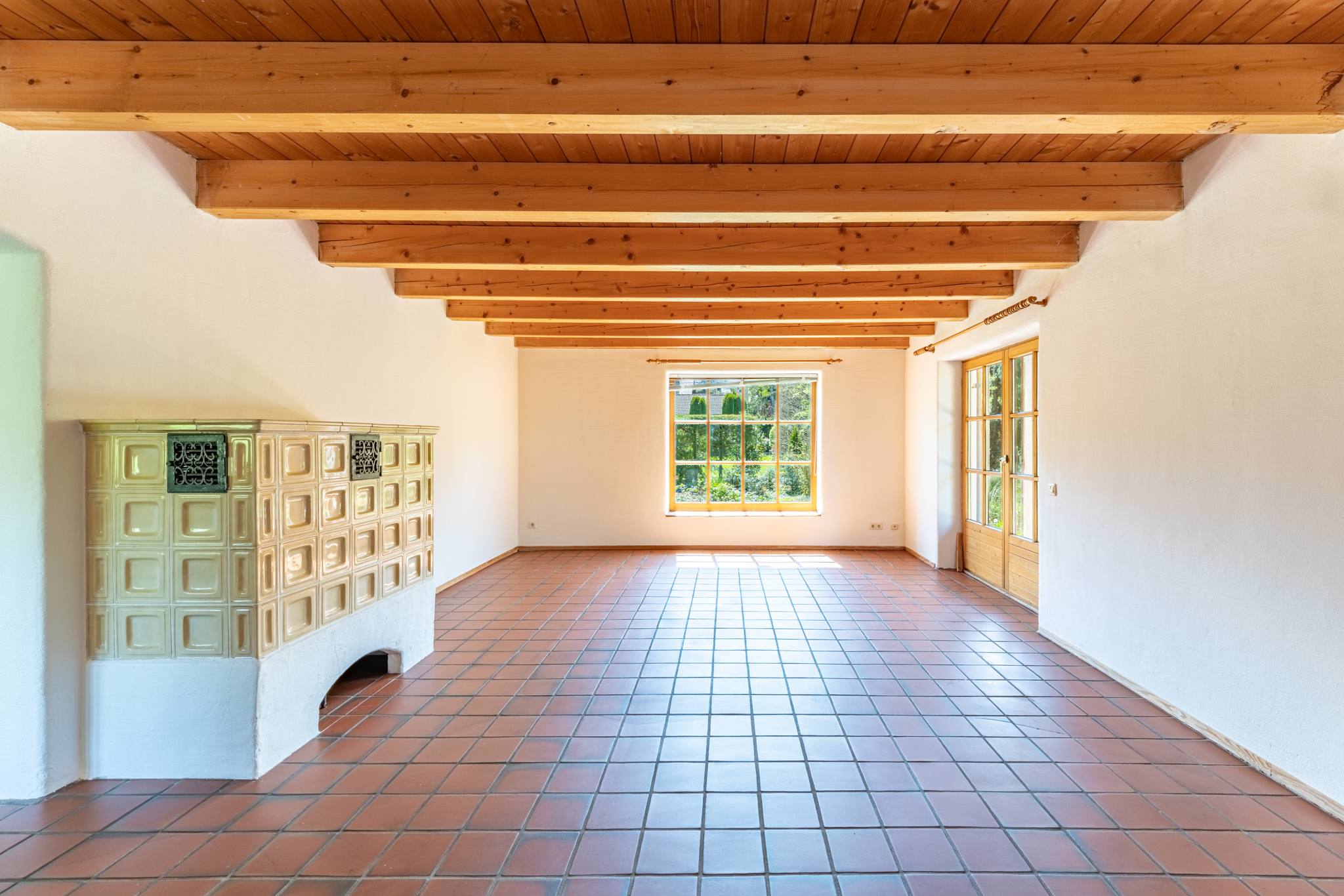 Herzstück des Familienhauses ist das fast 34 m² große Wohnzimmer mit Kachelofen und Zugang zur Westterrasse und dem blühenden Gartenparadies. Die gemütliche Essdiele mit Erker bietet ausreichend Platz für Familienessen im kleinen und größeren Kreis.